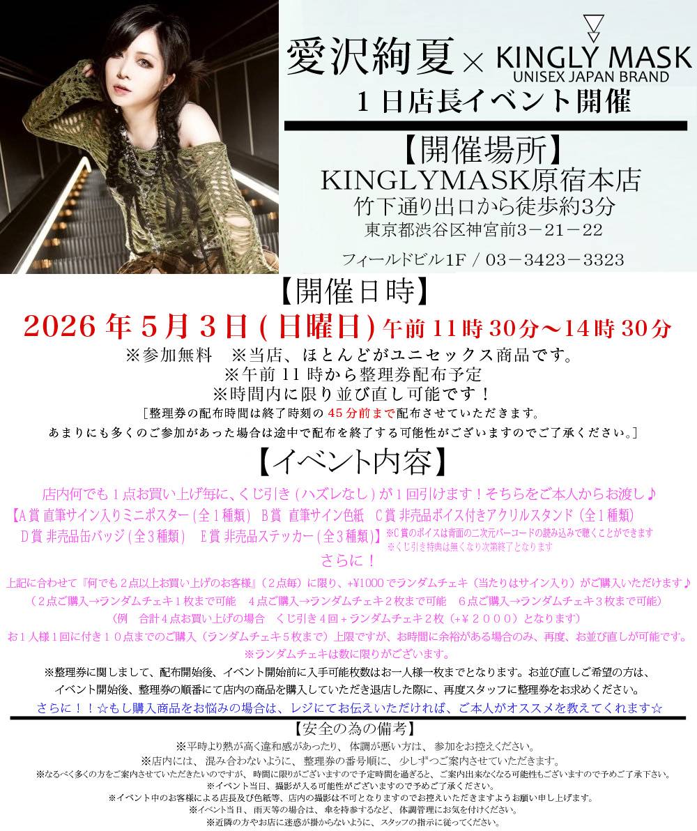【問い合わせ】KINGLYMASK 原宿本店 / 03-3423-3323